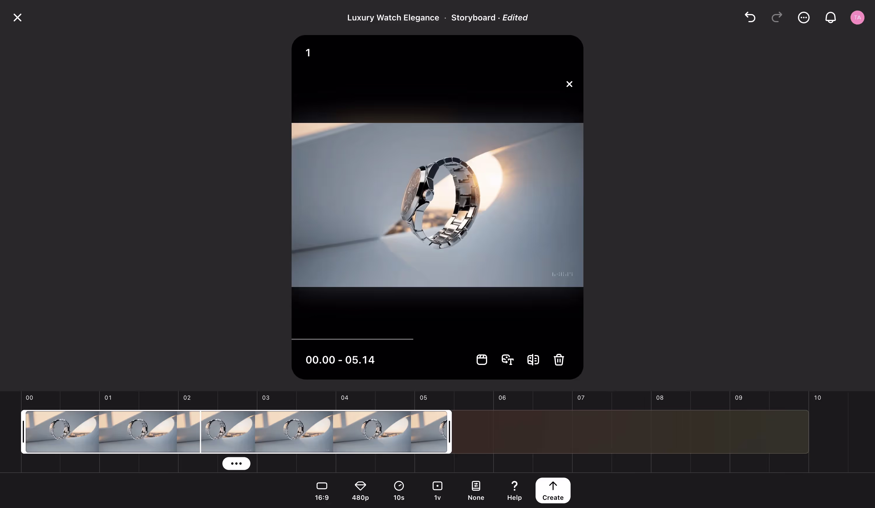 Click the “Create” button to start generating the video. The progress of the generation will appear in the activity menu in the top right corner.