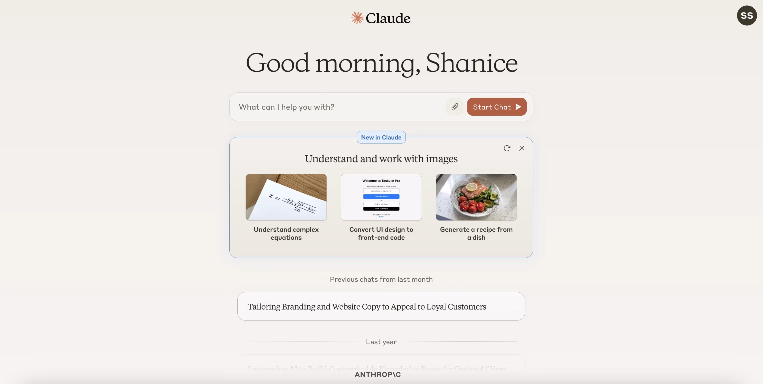 Interacting with Claude is pretty straightforward. After creating an account/logging in, you simply type what you want to ask or discuss in the “What can I help you with” bar and click ‘Start Chat’.