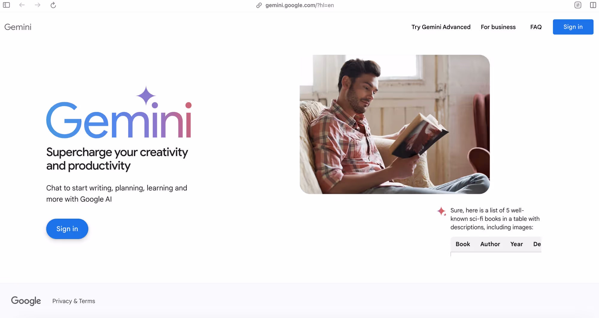 Once you sign in, Gemini's interface is intuitive. The main part of the interface is the chatbox at the bottom, where you can type anything to ask Gemini. What you type is called a prompt.
