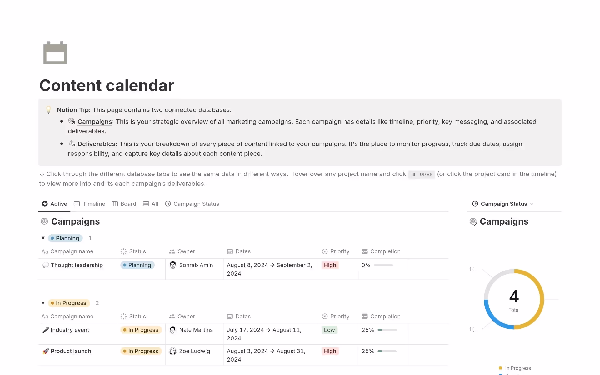 Marketing: Marketing teams use Notion to plan content calendars, track campaign performance, and collaborate on creative briefs.