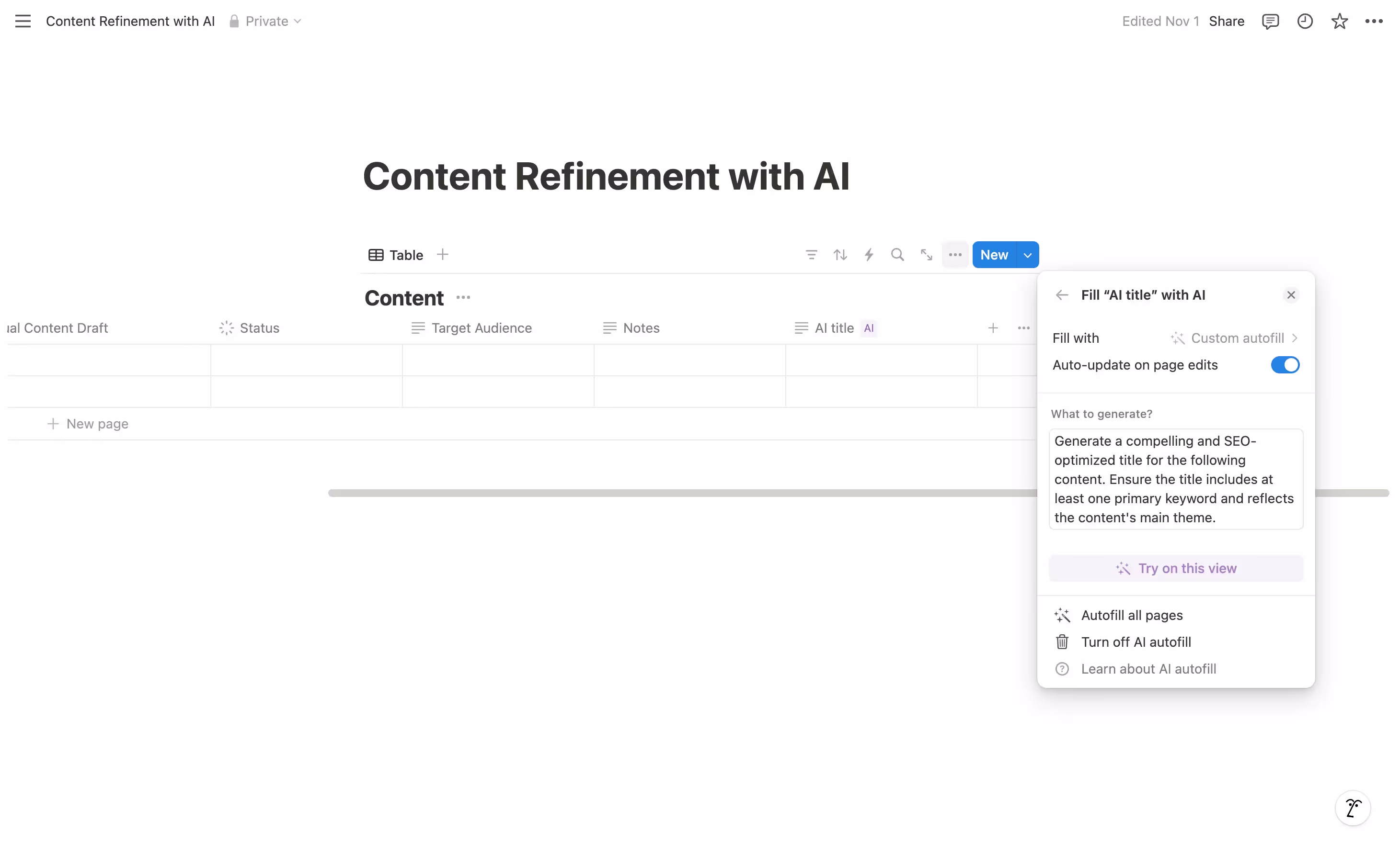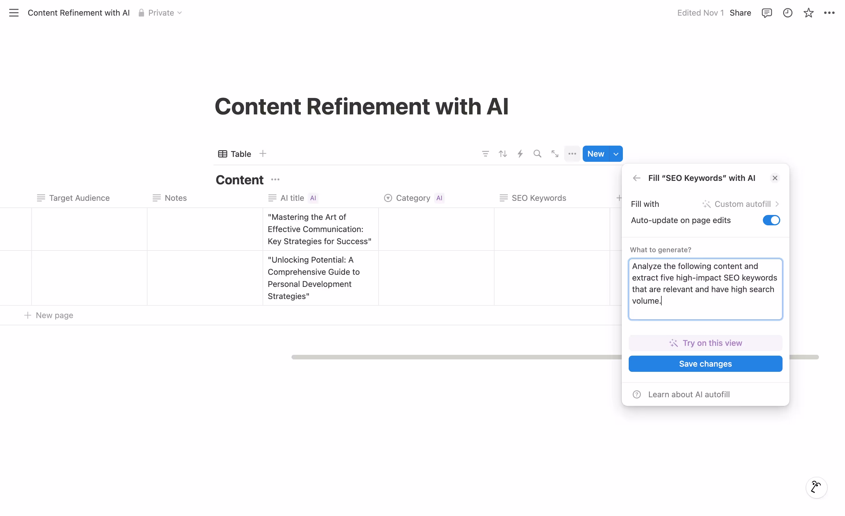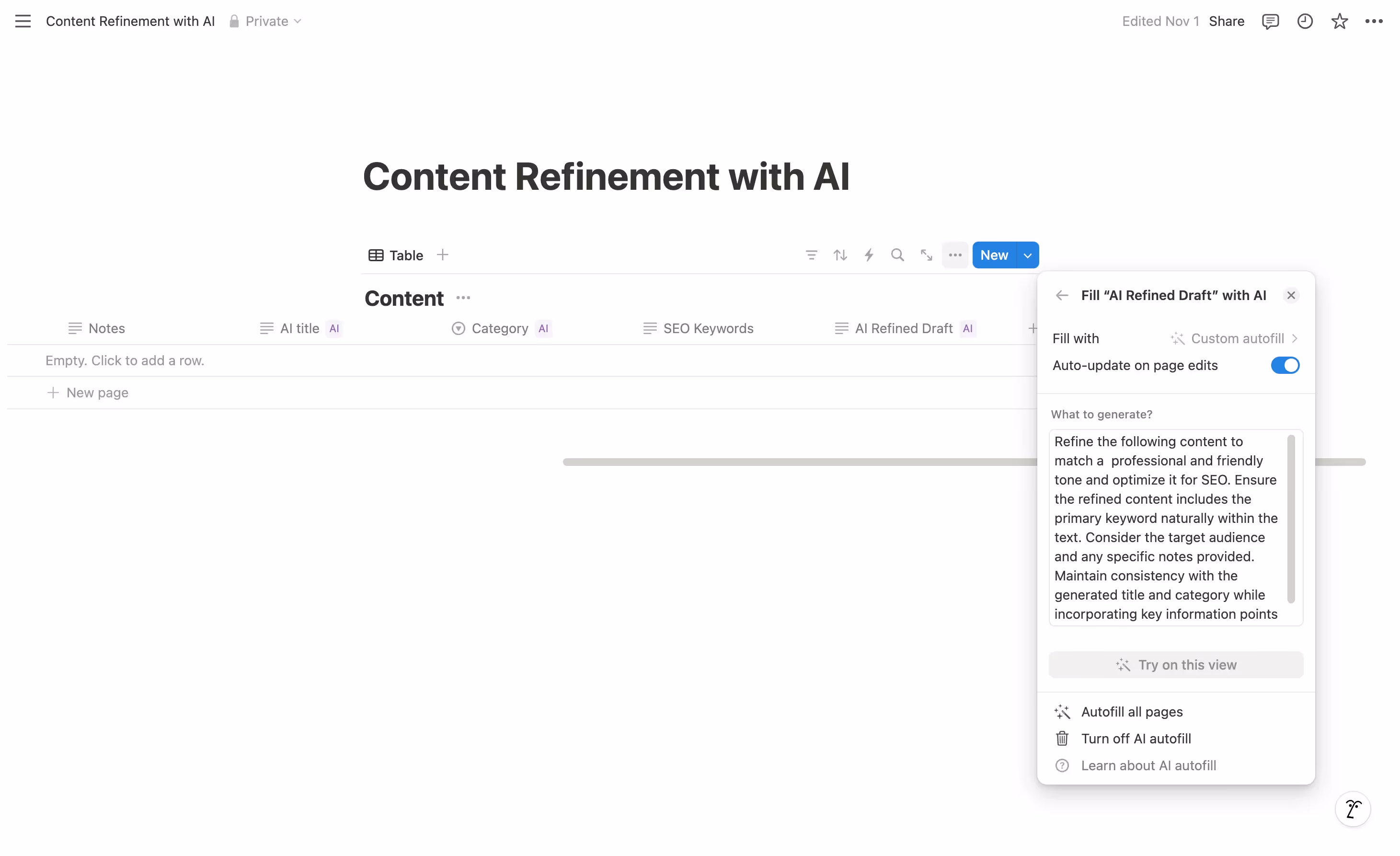Custom Autofill ✍️ Think of this as your most flexible AI assistant. It can be programmed to perform any task - from generating titles to analyzing content to creating sophisticated outputs based on multiple inputs.