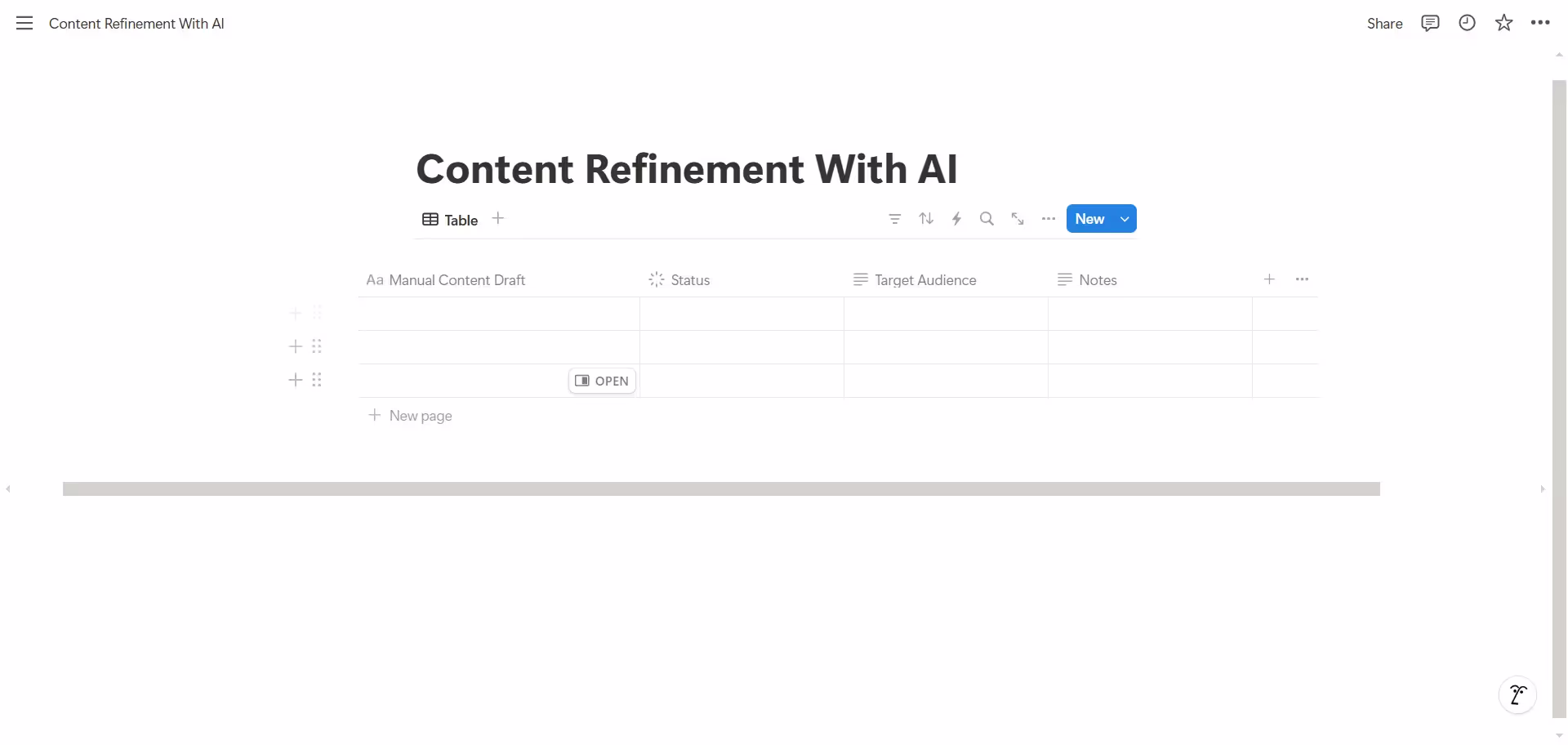 Create a "Target Audience" text column. This field helps Notion AI understand the context and tone needed for refinements. For content, this might be "Technical developers" or "Marketing executives." For support tickets, it could be "Enterprise clients" or "Small business users."