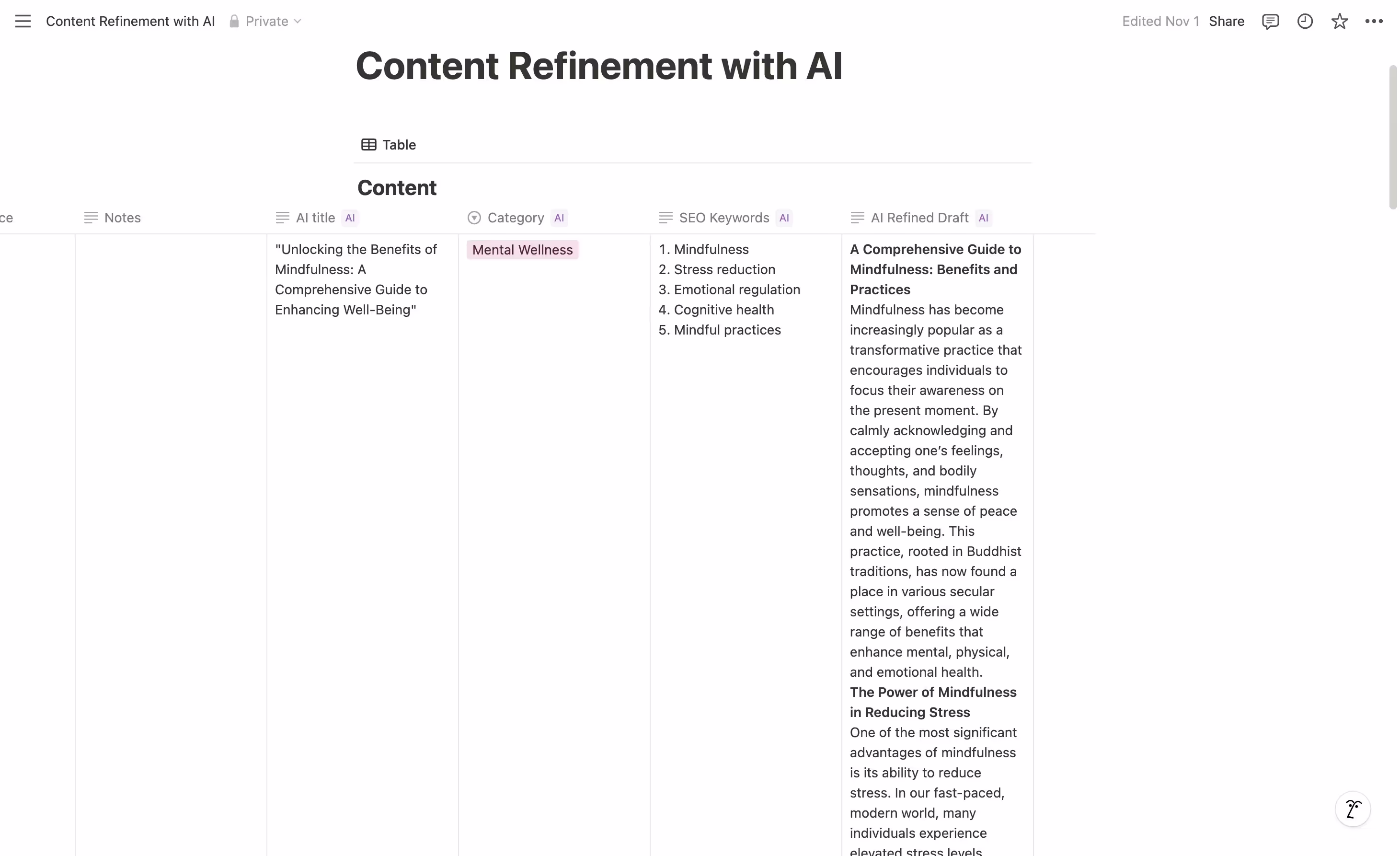 The power of this system lies in its ability to maintain consistent quality across your entire database while significantly reducing manual effort. Whether you're managing blog posts, support tickets, or project documentation, these AI properties work together to ensure high-quality, optimized content with minimal human intervention.