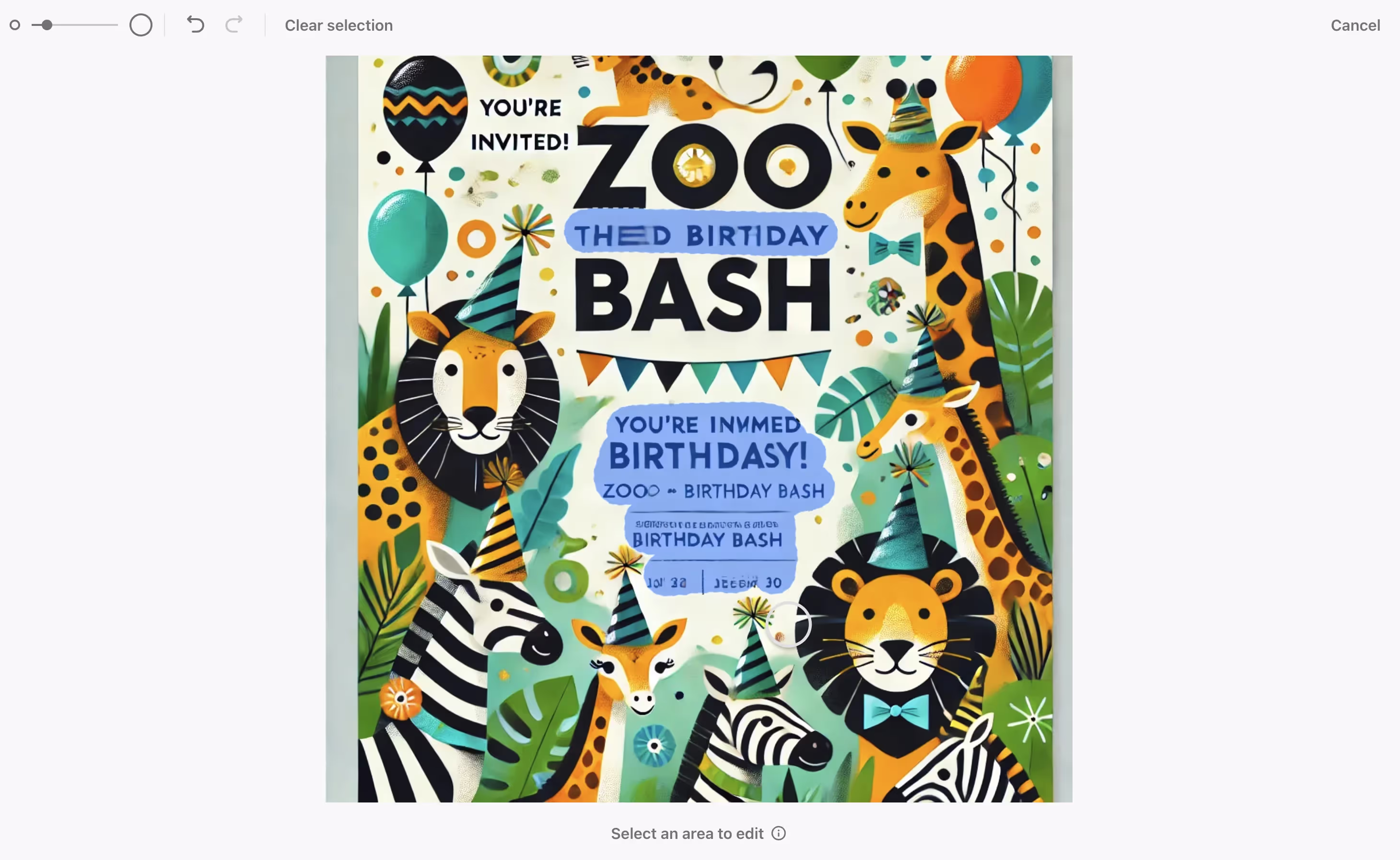 This tool will let us highlight all of the areas in the image we want to remove. For example, I’m going to remove most of the text.