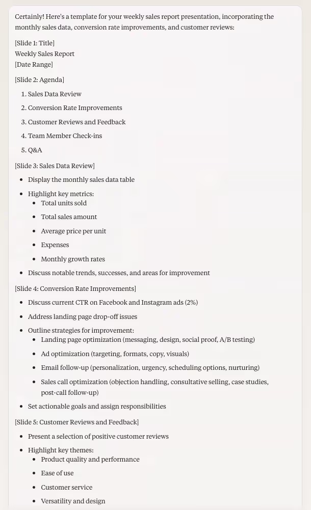 Want to deliver consistent, insightful sales reports? Claude’s got you covered.
