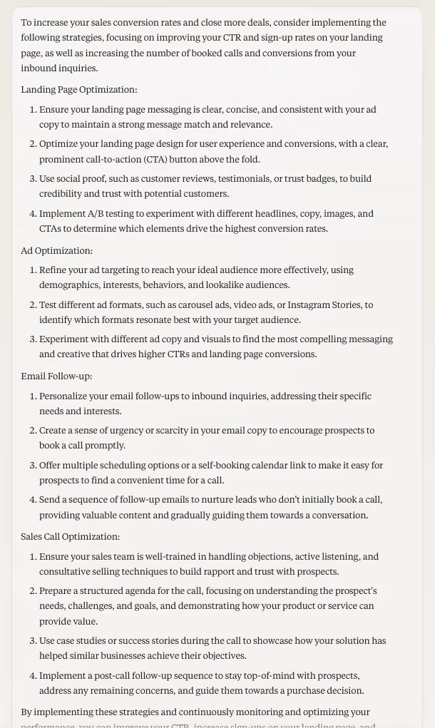 Claude can also provide a fresh perspective on optimising your sales processes for higher conversion rates.